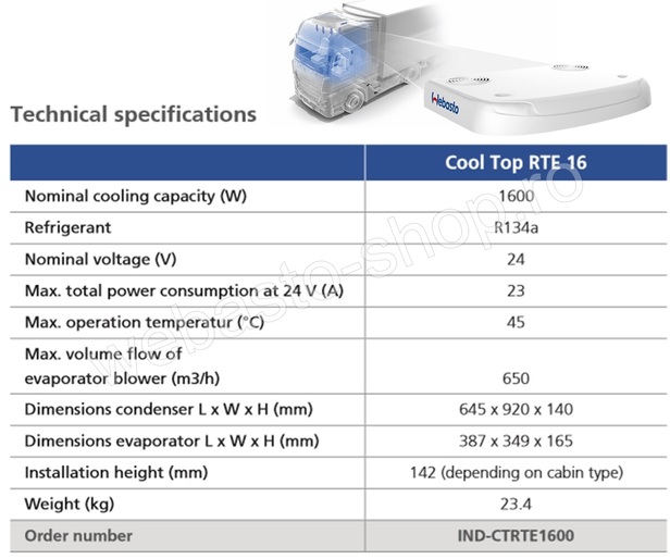 - Echipamentul recomandat de noi – Cool Top RTE 16 se poate utiliza numai cu conditia existentei pe camion a instalatiei de A/C de bord, care poate asigura in timpul mersului o temperatura de minim 25 - 28 grd.C