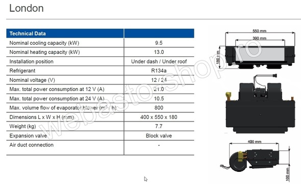 Integrated HVAC London 12V black 9,5 kW 13 kW |