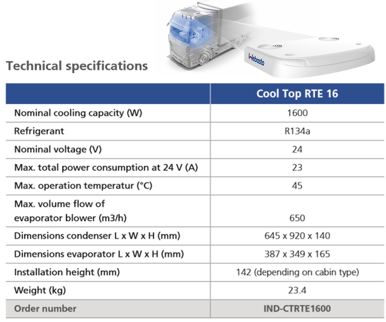 • Echipamentul recomandat de noi – Cool Top RTE 16 se poate utiliza numai cu conditia existentei pe camion a instalatiei de A/C de bord, care poate asigura in timpul mersului o temperatura de minim 23 - 28 grd.C